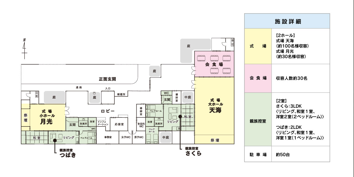 高齢者や足のご不自由な方、車椅子の方にもやさしい造りの斎場となっています。
